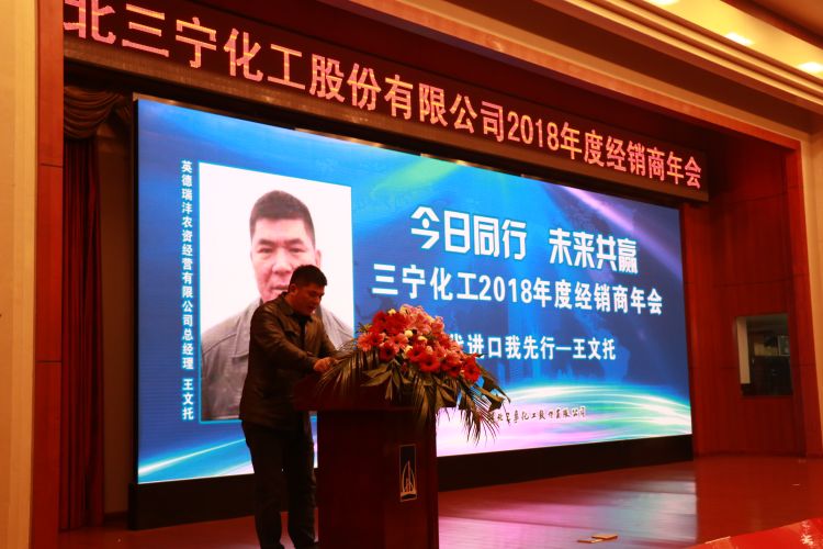 李沛表示,2019年,三宁将继续打好“现有生产经营、项目建设和托管金华润”三大攻坚战,以宁陵工厂投产运营为新起点,深入布局全国化肥市场;一如既往地与广大经销商、农民朋友们同心同力,持续开展取代进口系列活动,为振兴三农事业再立新功,为合作伙伴实现人生梦想不懈努力。