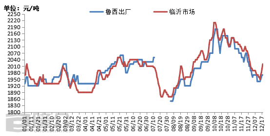 图3 2018年山东尿素出厂与临沂市场价格走势图